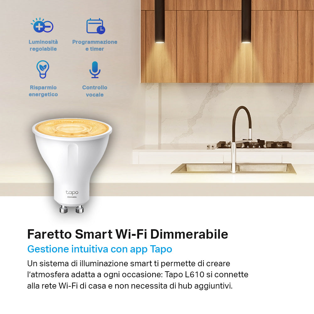 Tapo L610 Faretto LED Smart Wi-Fi Dimmerabile GU10, Controllo Vocale con Alexa, 4pz