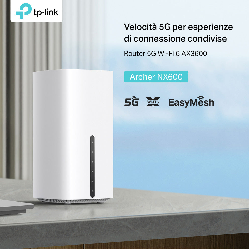 TP-Link Archer NX600 Router 5G Wi-Fi 6 AX3600Mbps Dual Band, Porta WAN/LAN 2.5G+2×Porte Gigabit LAN, Plug & Play, 4K-QAM, 8×5G/LTE, 2×Wi-Fi Antenne Interne, EasyMesh, HomeShield