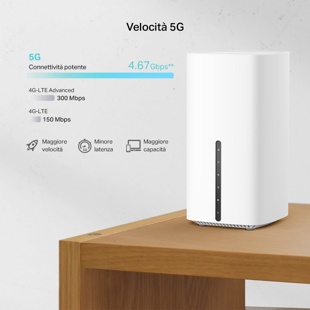 • Supporto connettività 5G - Connetti la tua casa sfruttando connettività 5G avanzata con velocità di download fino a 4.67 Gbps e condividi la rete con più dispositivi Wi-Fi.
