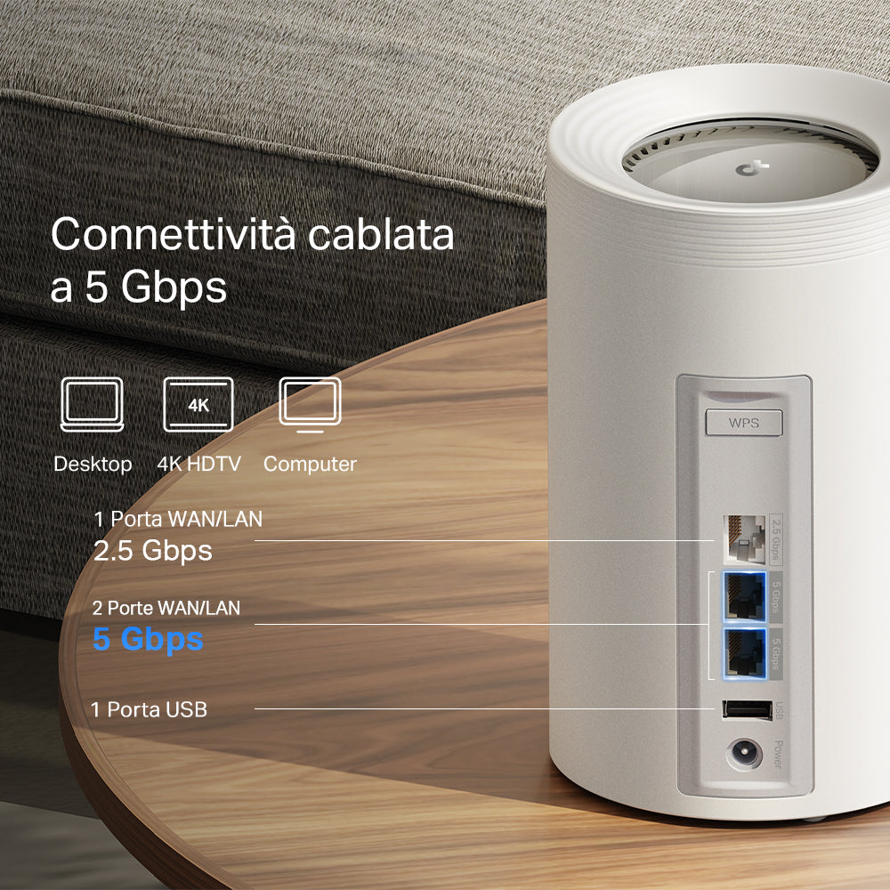 - ● Porte 5 Gbps - 2 porte da 5 Gbps e 1 porta USB 2.5 Gbps garantiscono la massima flessibilità e un throughput potenziato.