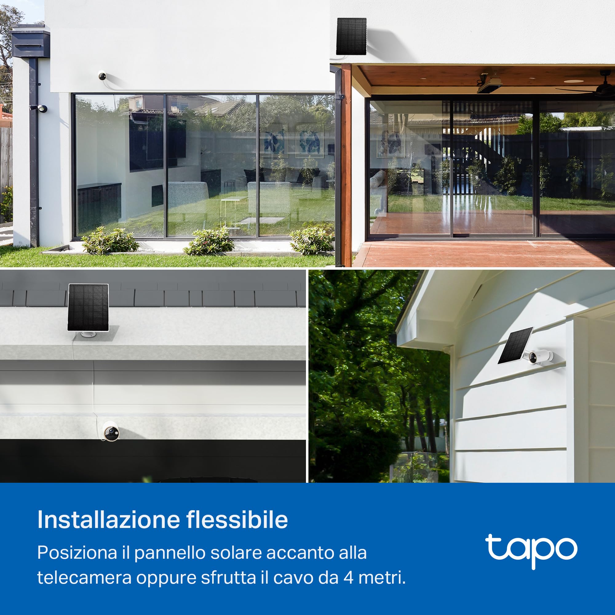 - ● Funziona con le telecamere a batteria Tapo - compatibile con le telecamere a batteria Tapo1, consentendo alla tua telecamera a batteria Tapo di proteggerti tutto l'anno.