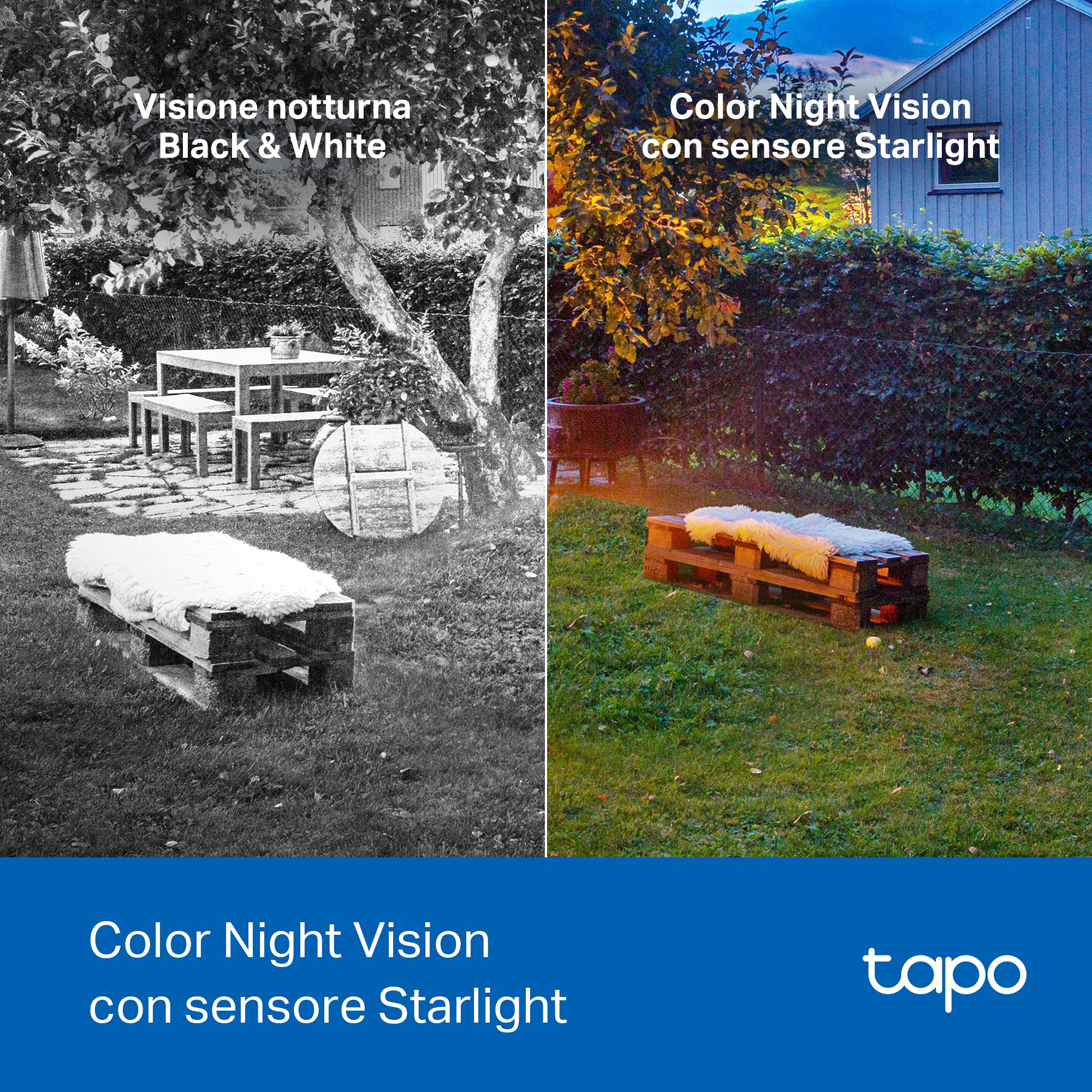 - ● Color Night Vision - Riprese luminose e a colori in condizioni di scarsa luminosità grazie al sensore starlight e ai faretti integrati.