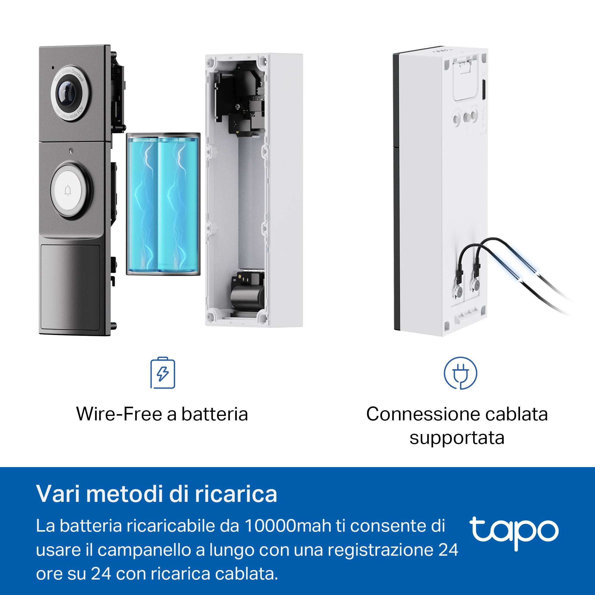 Tapo D235 Video Campanello 2K 5MP, Visione Notturna a Colori, Batteria 10000mAh o Connessione Cablata