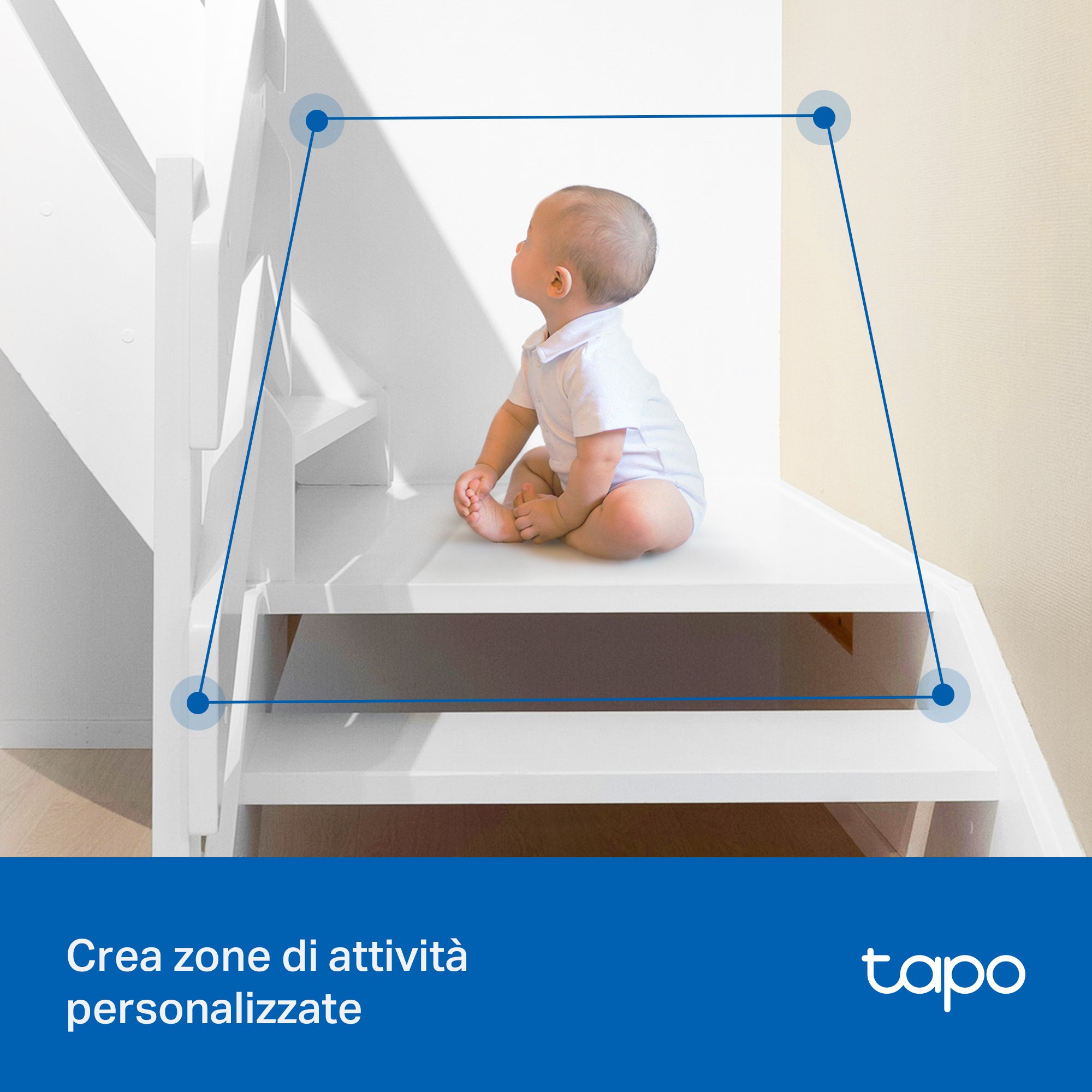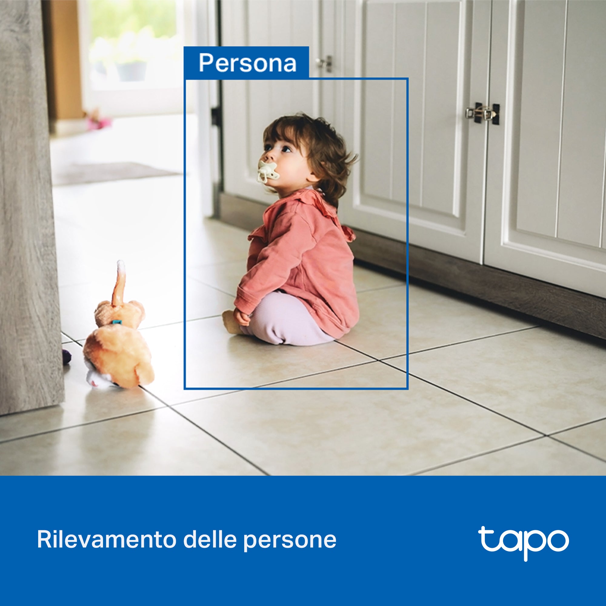 - ● Opzioni di archiviazione - Storage locale su MicroSD card fino a 512 GB (non inclusa), o in Cloud con servizio TapoCare.