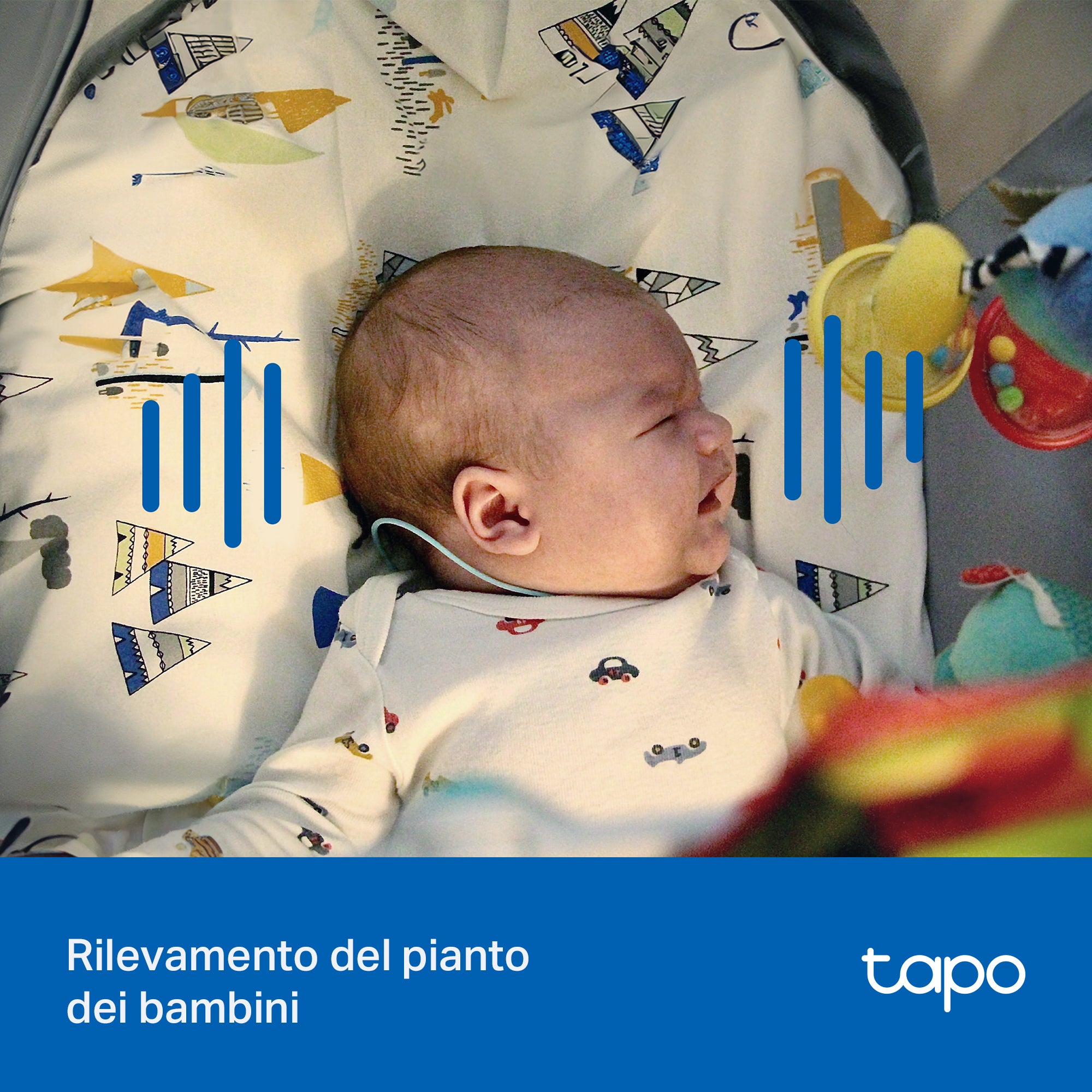 - ● Rilevamento e notifiche tramite IA - Identifica le persone e rileva il pianto dei bambini, inviandoti notifiche quando necessario.