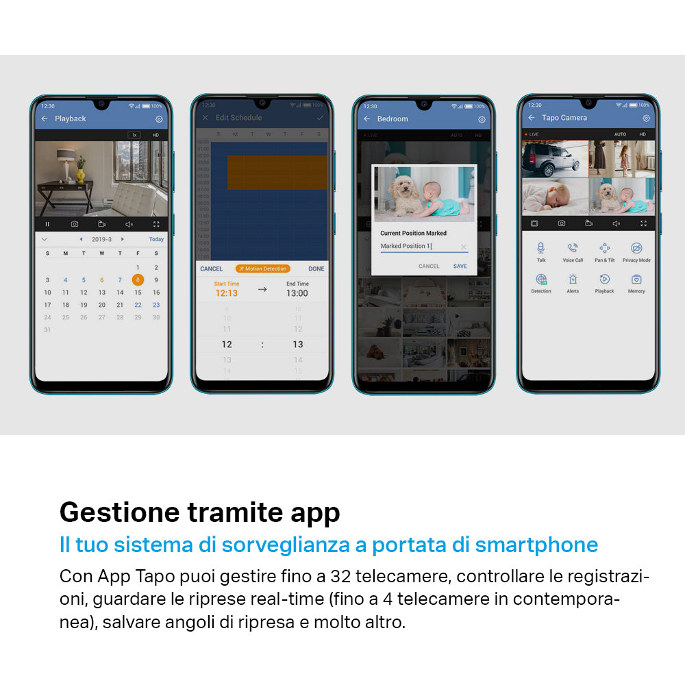 • Audio bidirezionale - La Tapo C200 è dotata di un microfono e un altoparlante integrati, permettendo agli utenti di comunicare con la famiglia, animali domestici o di avvisare gli intrusi.