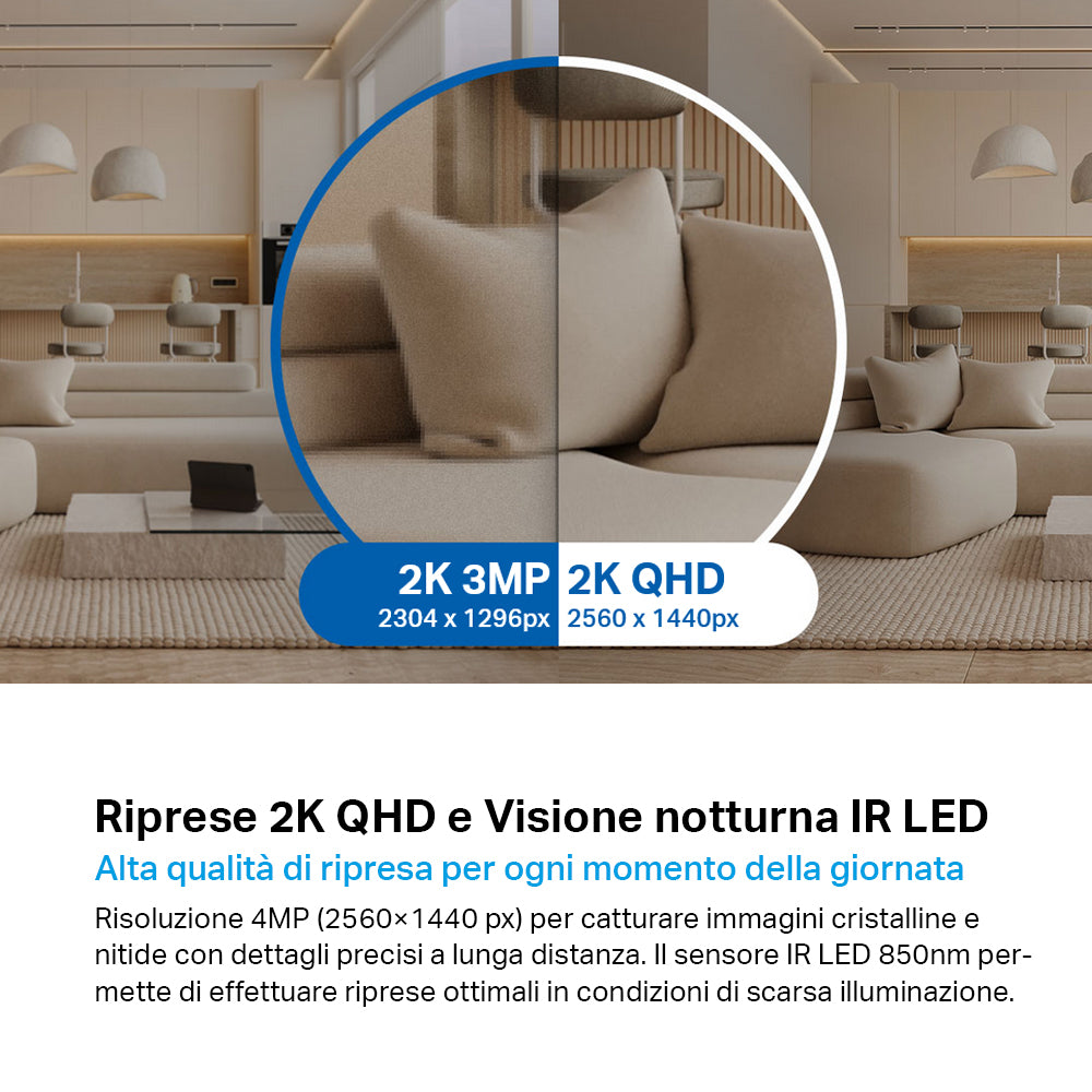 - ● Alta qualità video - Cattura video ricchi di dettagli con risoluzione 2K 4MP QHD.