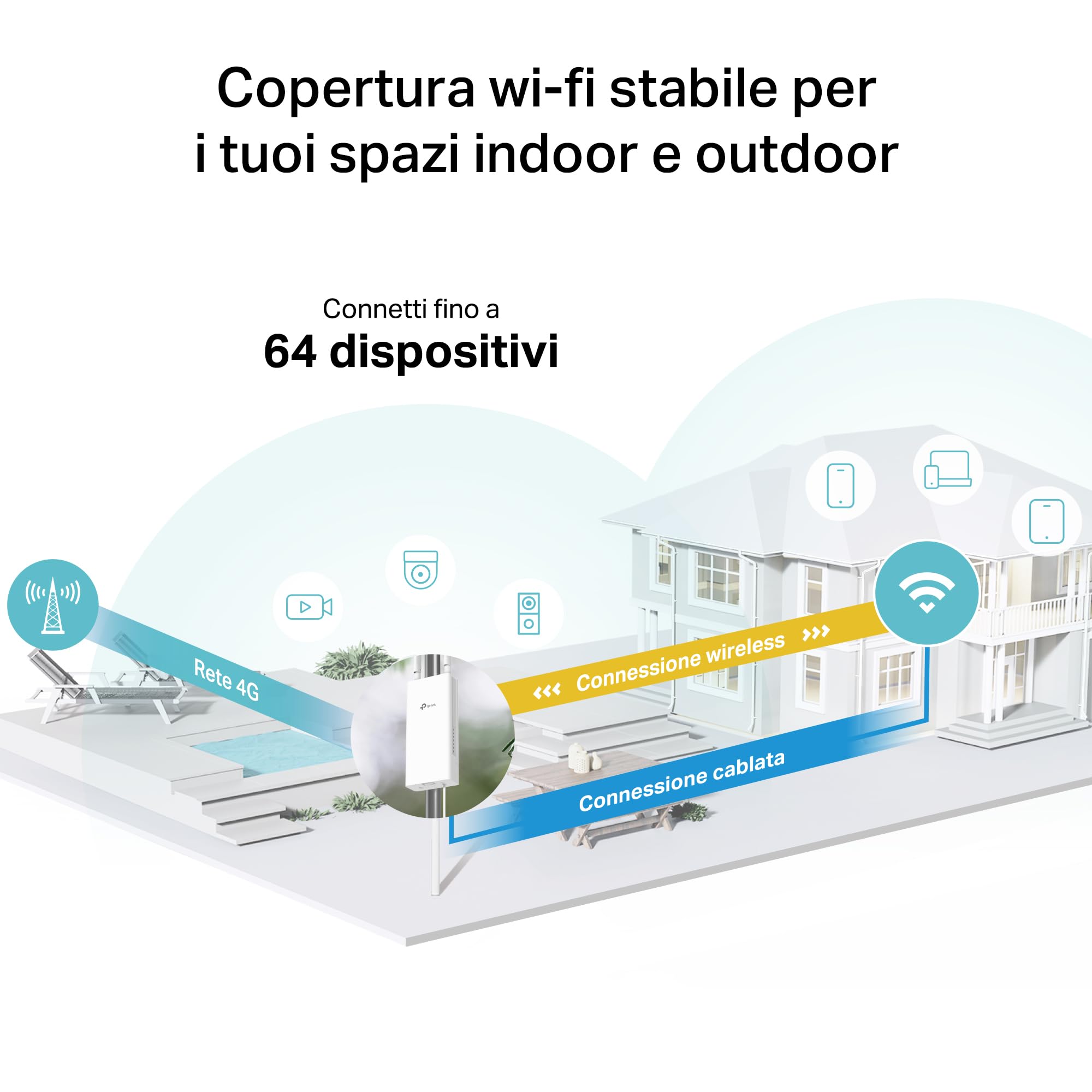 - ● Connessione 4G LTE veloce - Supporta reti 4G LTE Cat4 con velocità fino a 150 Mbps in download e 50 Mbps in upload, ideale per aree senza linea fissa.