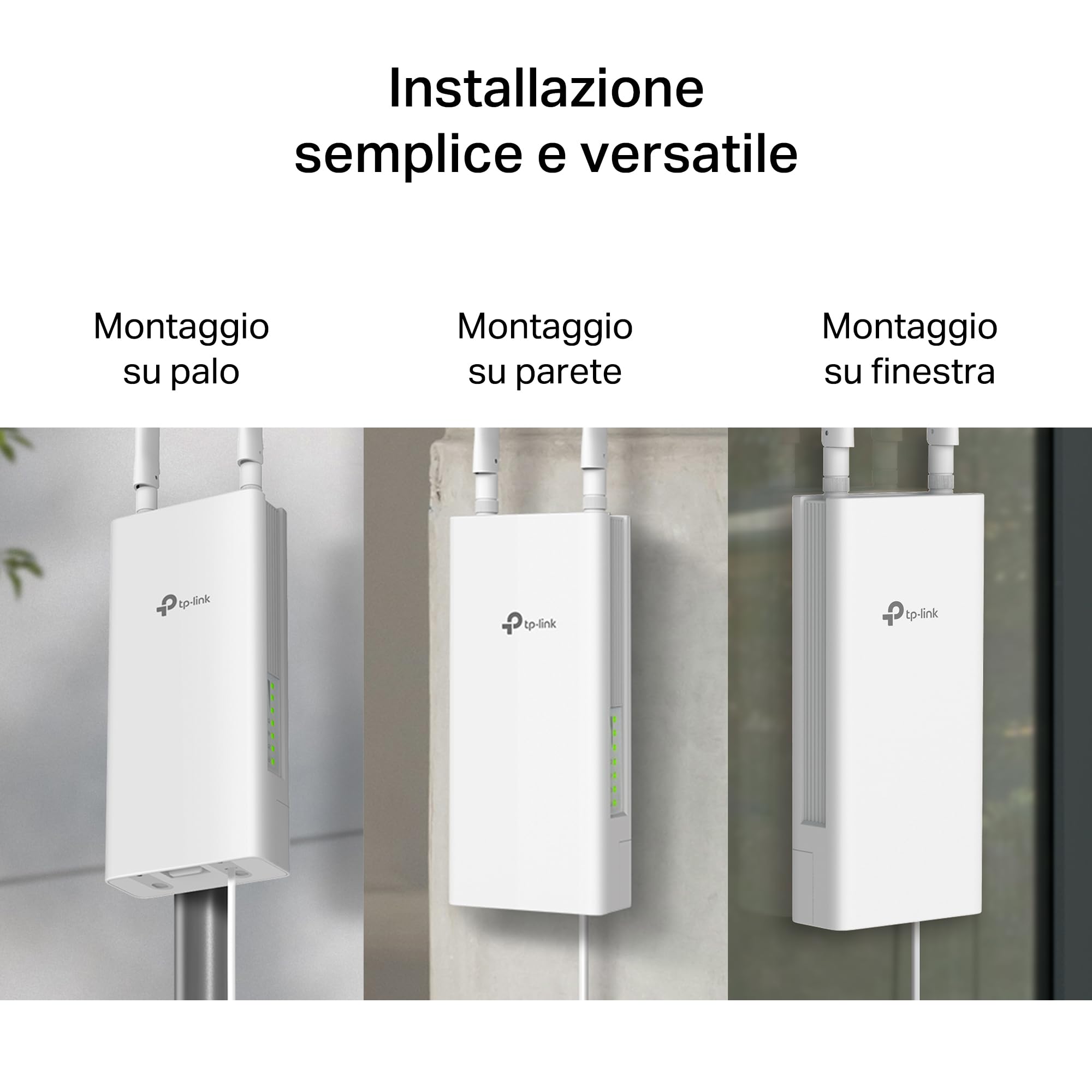- ● Installazione flessibile - Può essere montato su palo, parete o finestra, per ottimizzare la ricezione del segnale LTE.
