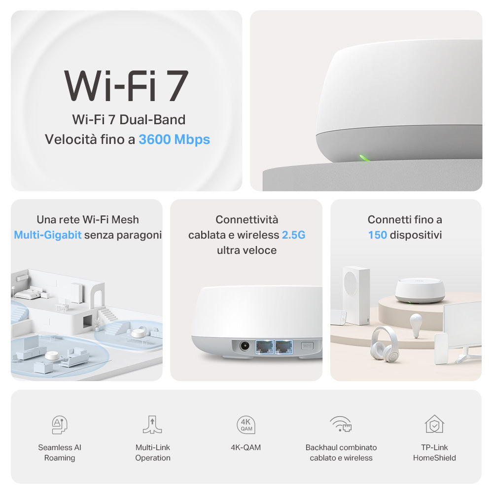 • Seamless Roaming AI-Driven - Forma una rete unificata con AI-Roaming integrato, creando la soluzione Wi-Fi ideale per la tua casa.