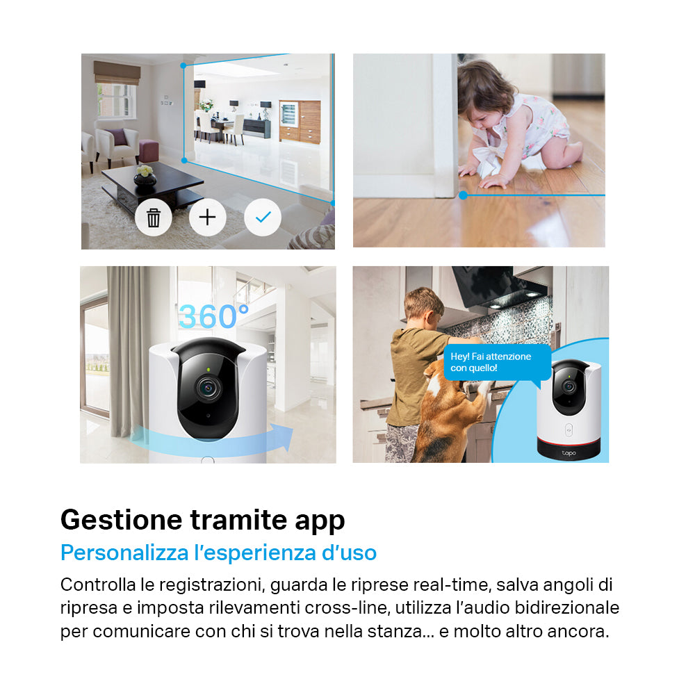 Tapo C225 Telecamera Wi-Fi Interno 2K 4MP, 360° Visuale, Rilevazione e Notifiche Smart AI