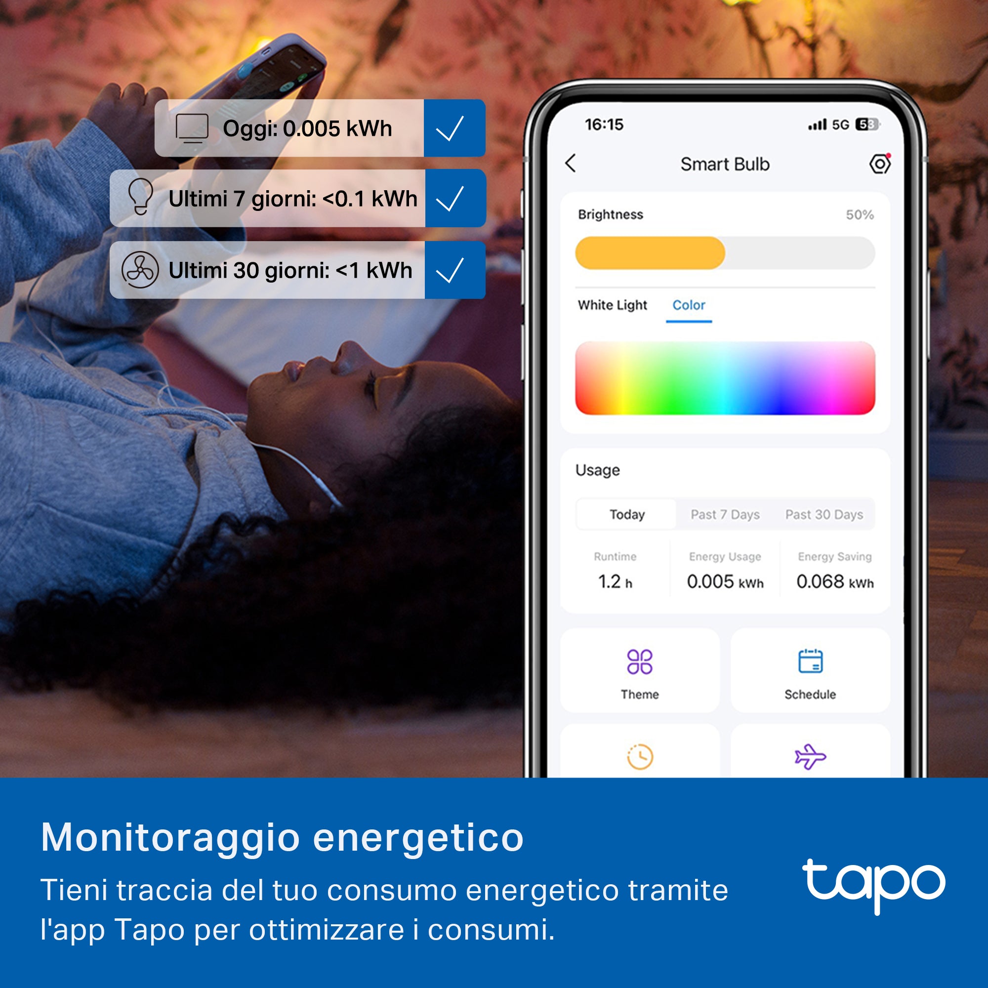 - ● 16 milioni di colori - crea un'atmosfera fantastica scegliendo le luci da un'ampia gamma di colori, oppure imposta l'intensità luminosa che preferisci per creare l'atmosfera perfetta.
