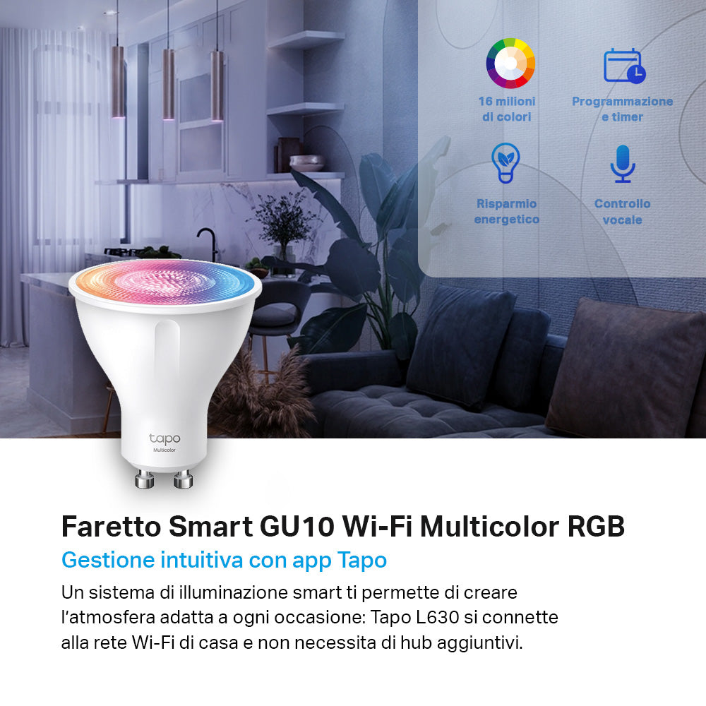 Tapo L630 Faretto LED Smart Wi-Fi Multicolore GU10, Controllo Vocale con Alexa, 4pz