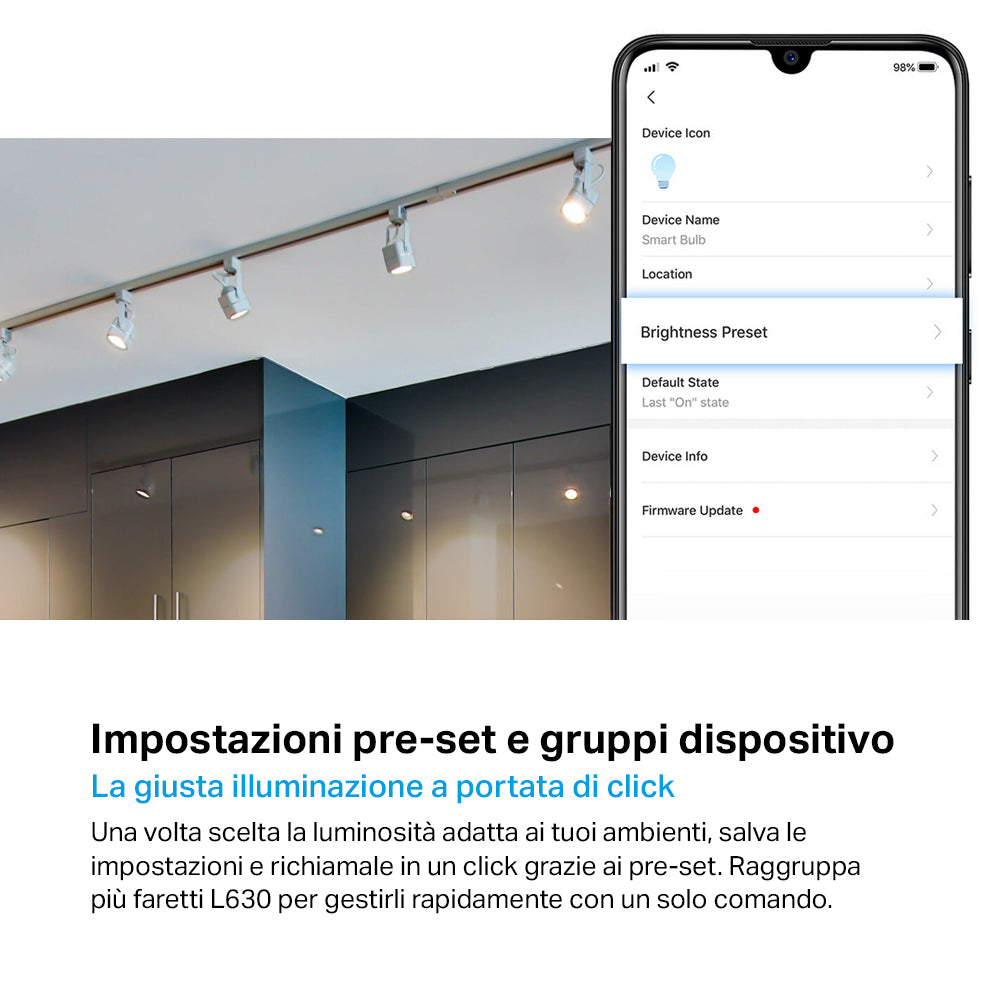 - ● Gruppi - Controlla tutti i tuoi faretti con un solo click sull'app Tapo.