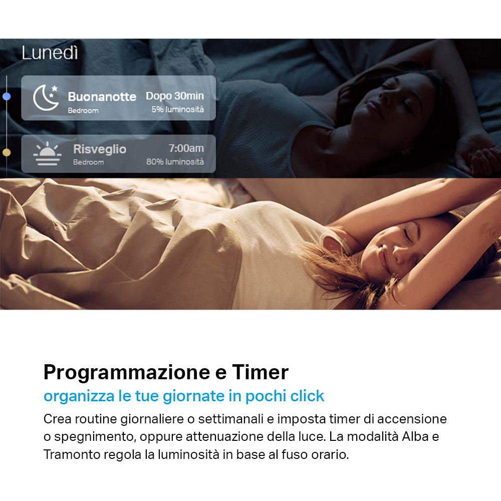 - ● Programmazione - Crea una pianificazione per gestire i tuoi dispositivi smart in modo automatico.