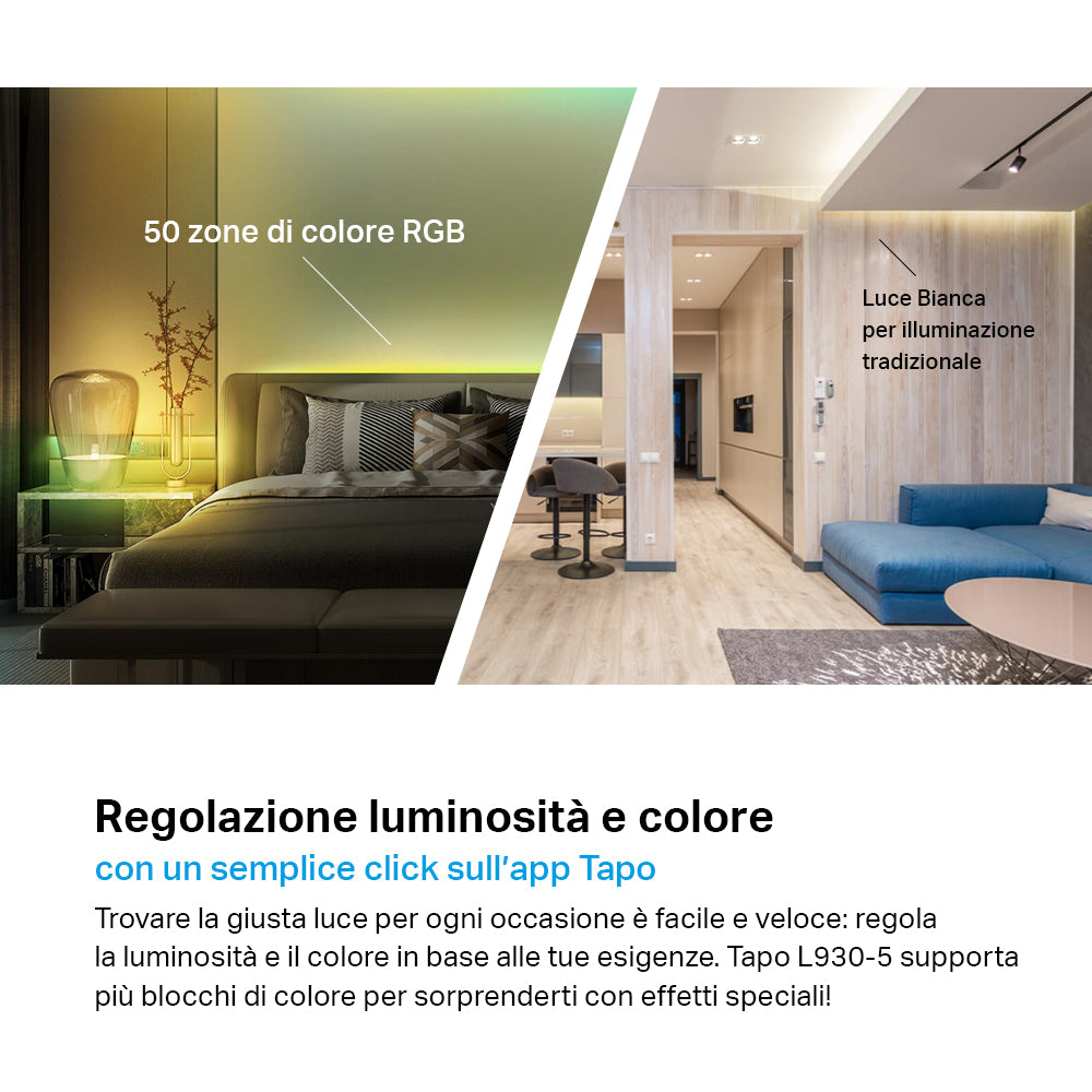 Tapo L930-5 Striscia LED Smart 5m, Impermeabile IP44, DIY Multicolore Segmentato, LED Bianchi, WiFi Strisce LED RGBIC, Alexa, Google Assistant, Luci LED Adatto per Casa, Bar