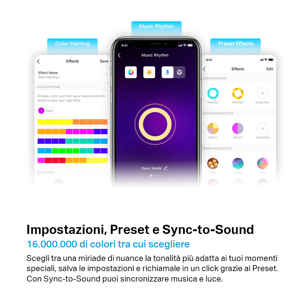 - ● Effetti luminosi - divertiti sperimentado effetti di luce animati, disponibili sull’app Tapo.