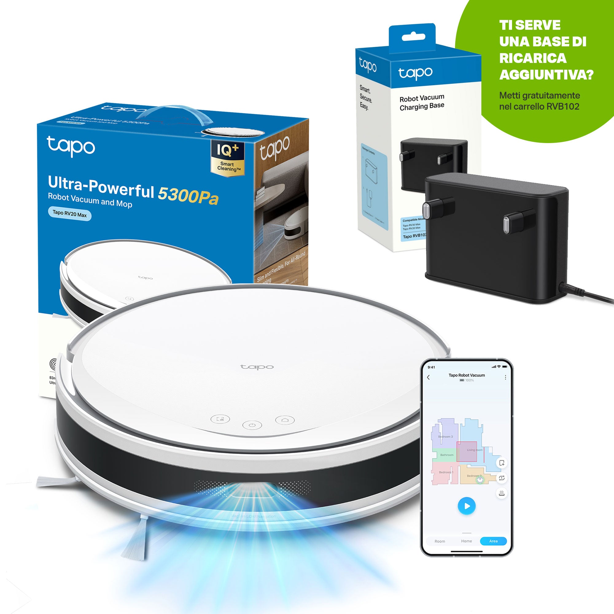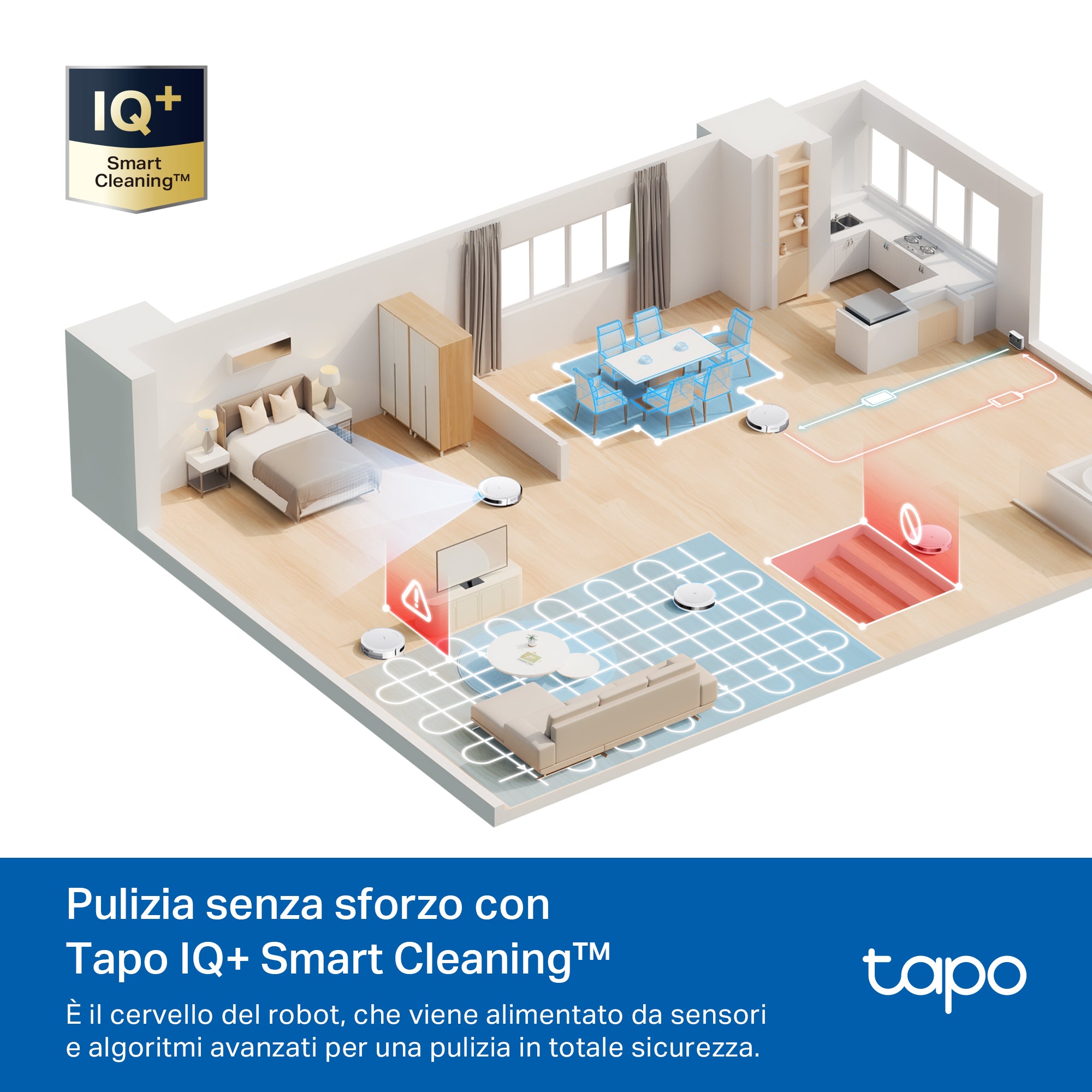 - ● Tapo IQ+ Smart Cleaning™ - Alimentato da sensori e algoritmi avanzati.