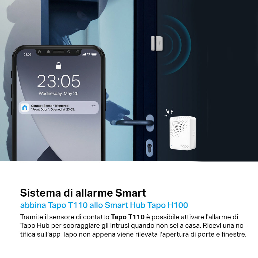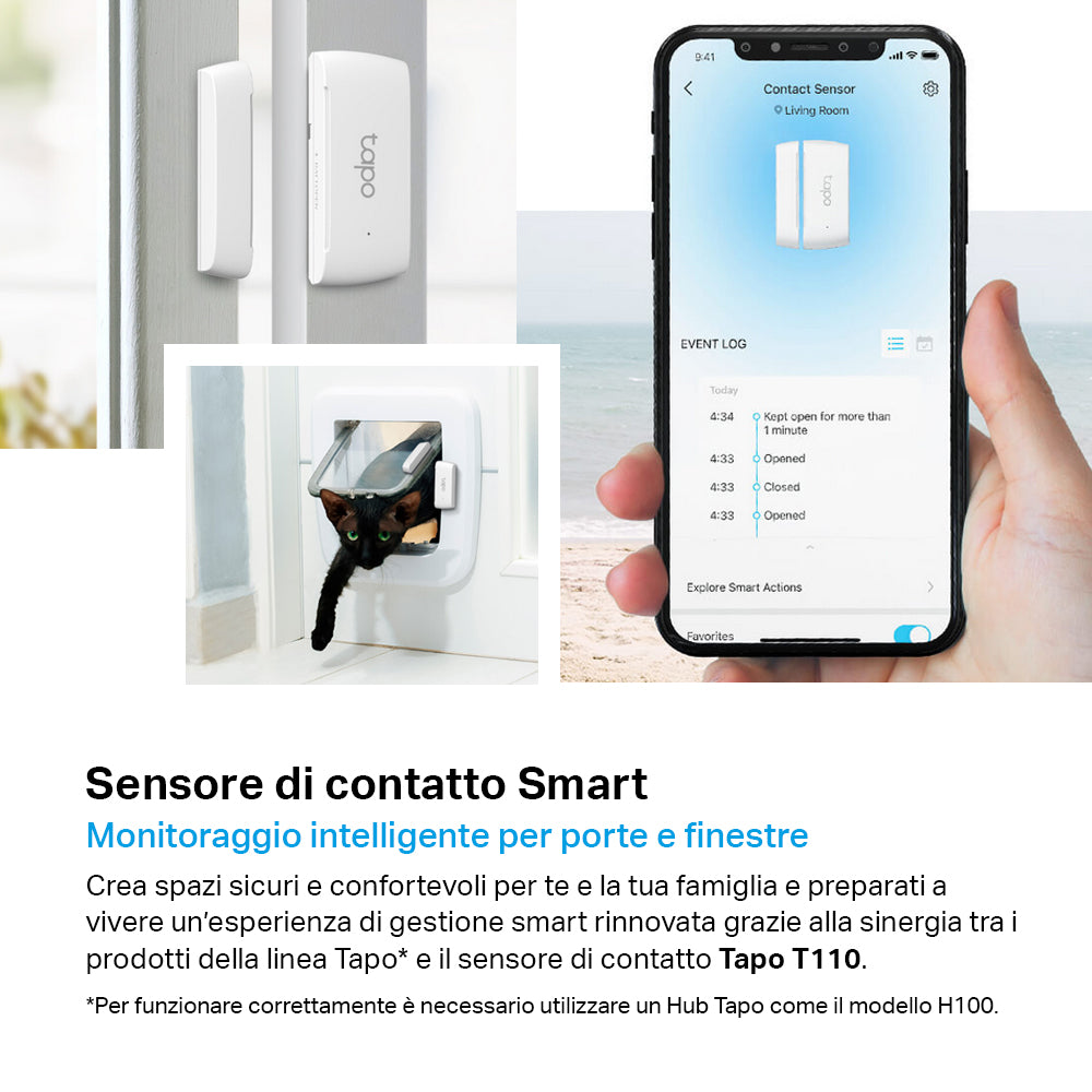 • Hub necessario - Per funzionare correttamente e dialogare con gli altri dispositivi della gamma, Tapo T110 deve essere abbinato a uno smart Hub Tapo come il modello H100.